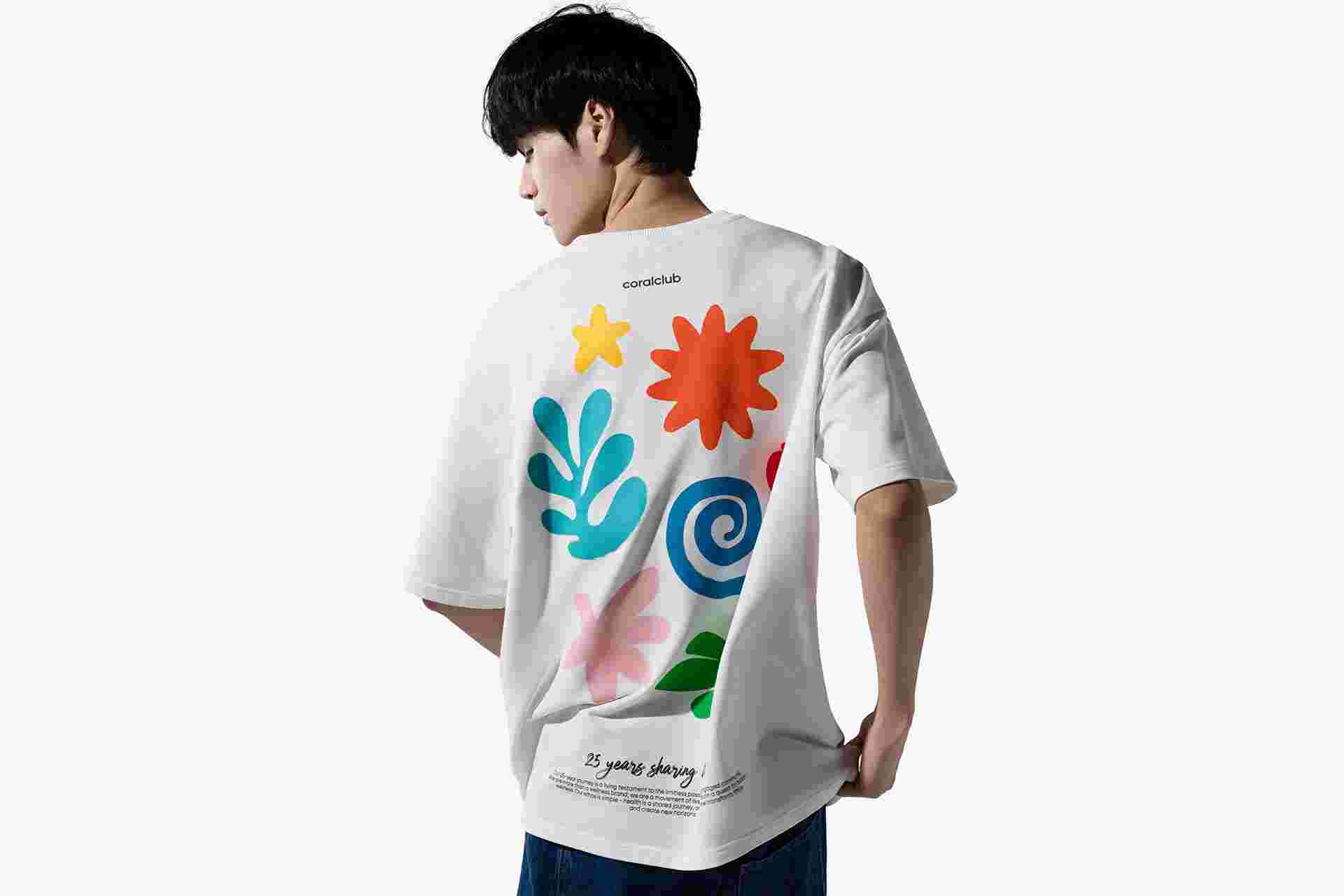 Bő szabású póló a jubileumi kollekcióból, amelyet kifejezetten a Coral Club 25. évfordulójára készítettek.